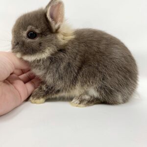 Introducing Peanut, a delightful female Netherland Dwarf, just months old, with a soft cream-colored coat that exudes warmth and charm. This little lady is as sweet as her name suggests, with a curious personality and a gentle, cuddly nature that makes her the perfect companion for any bunny-loving home.