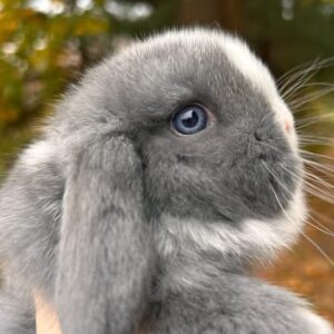 > Meet Skye, a stunning Broken Blue Holland Lop whose vibrant blue eyes will melt your heart instantly!